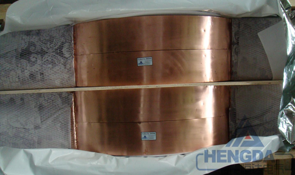 The copper material is heated to an optimal plastic-forming temperature in a controlled atmosphere, then continuously rolled through multiple passes via a hot rolling mill. This process gradually reduces the material to the target thickness and width while refining the grain structure.